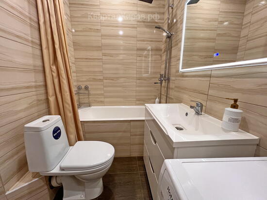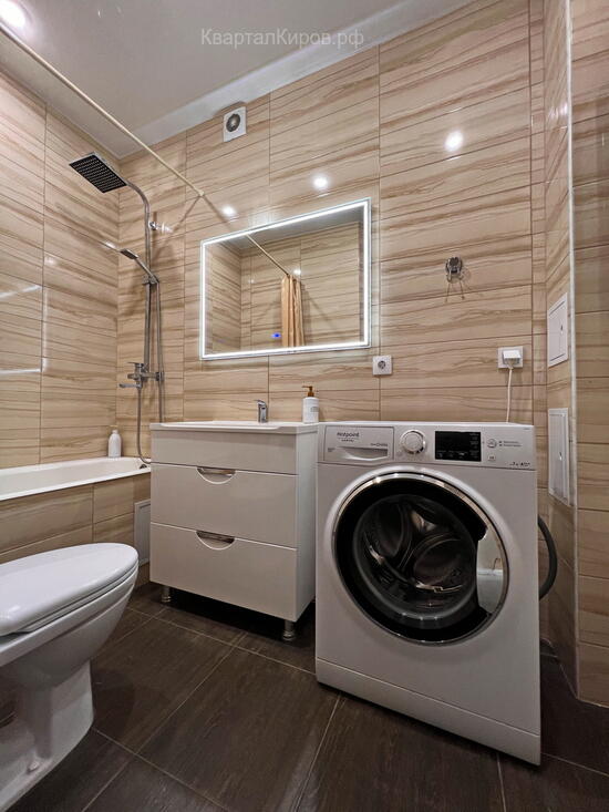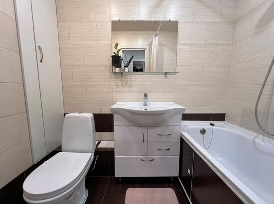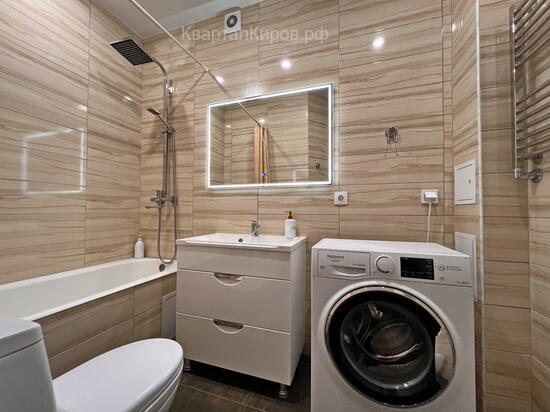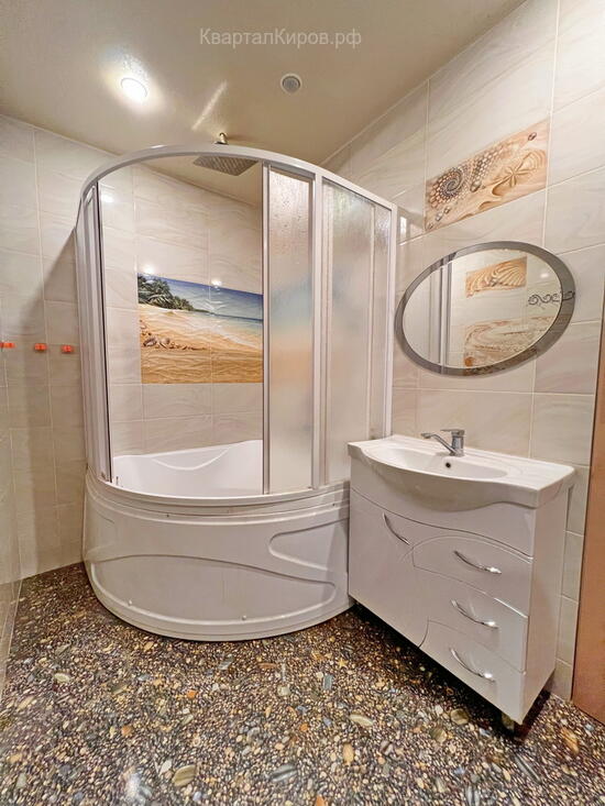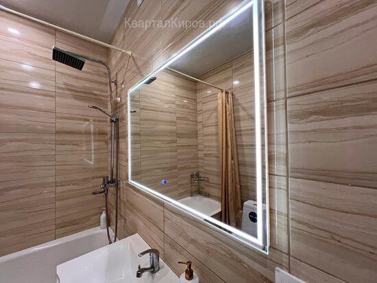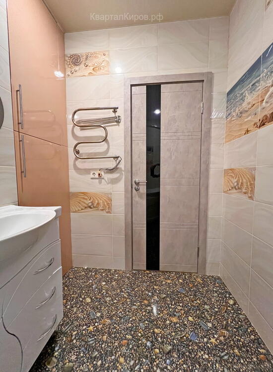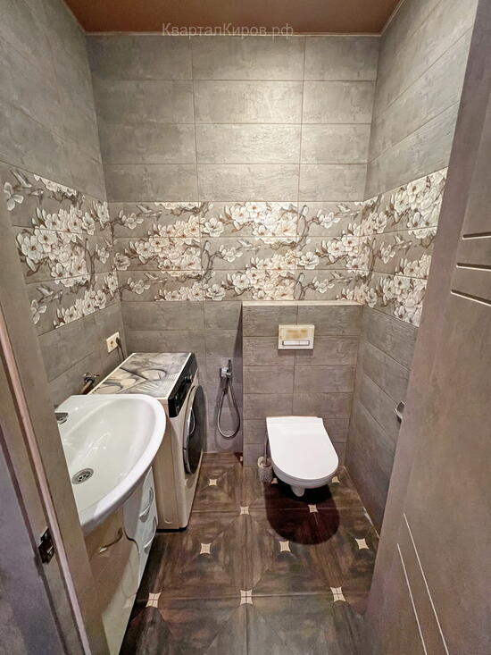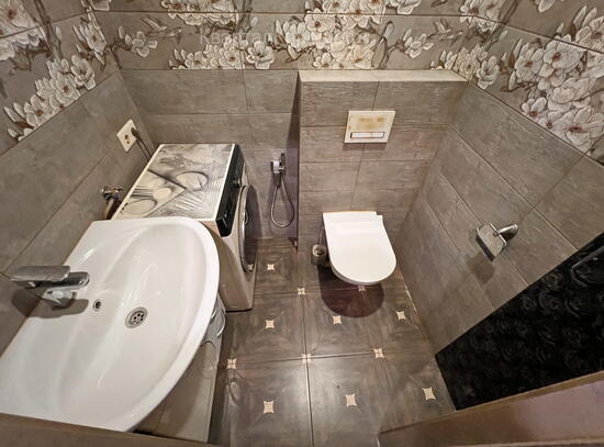 - Сделан отличный ремонт. Делали для себя, на материалах не экономили. На полу керамогранит и ламинат, санузел в плитке.
