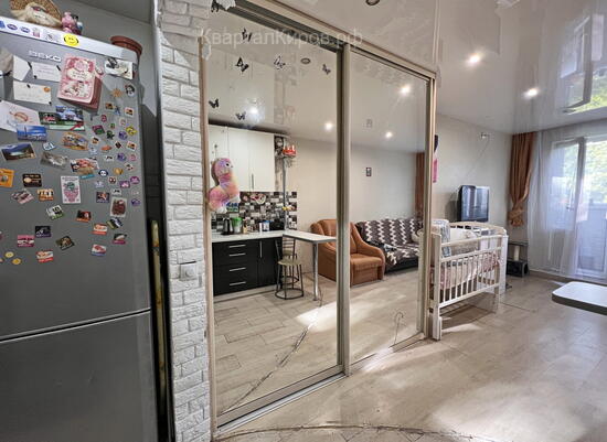 - Хорошая планировка: две комнаты, кухня, есть место под холодильник, в прихожей ниша для хранения одежды.