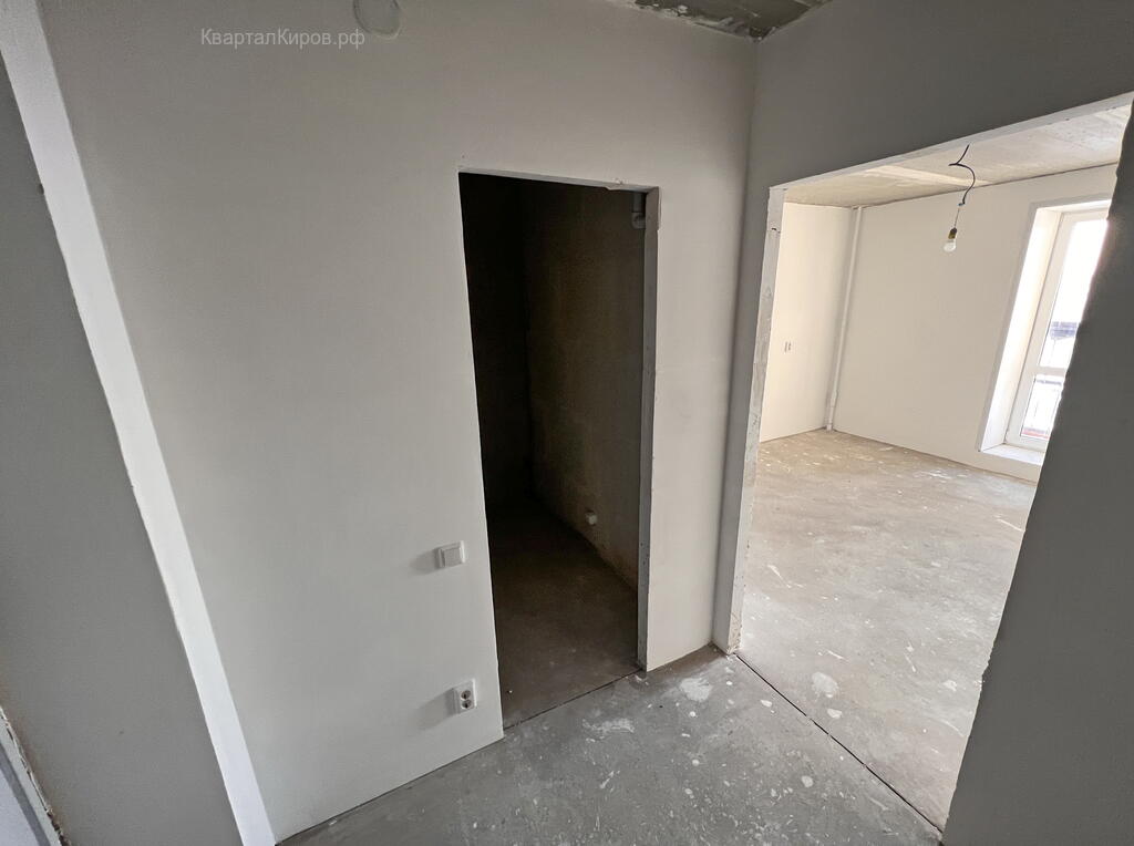 - Сделана предчистовая отделка. Качественная стяжка. Стены выравнены и зашпаклеваны, осталось поклеить обои. Установлены электророзетки и выключатели. На лоджии панорамное остекление.