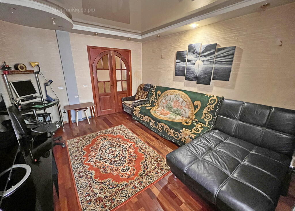 - Сделан хороший ремонт, всё заменили, новая стяжка, плитка на полу на кухне и у входа, ламинат в комнатах, пластиковые окна, новая сантехника, многоуровневые потолки, межкомнатные двери из массива.