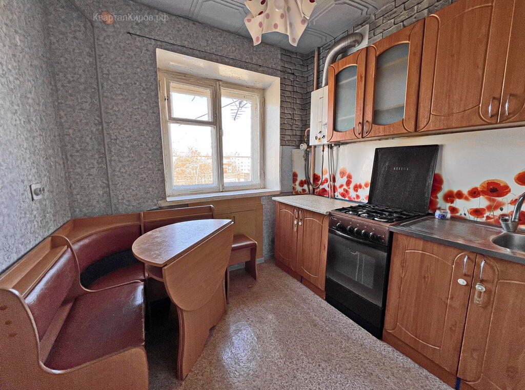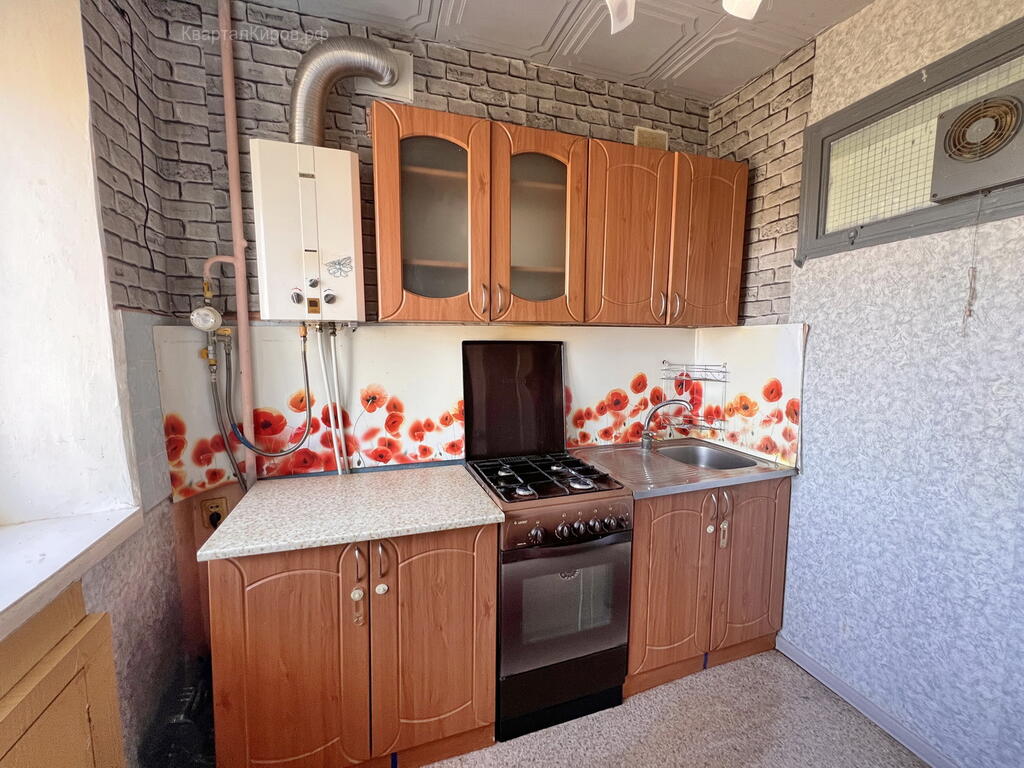 - Пластиковое окно в большой комнате, балкон застеклен. Оставляем кухонный гарнитур с новой колонкой-автоматом (всегда горячая вода).