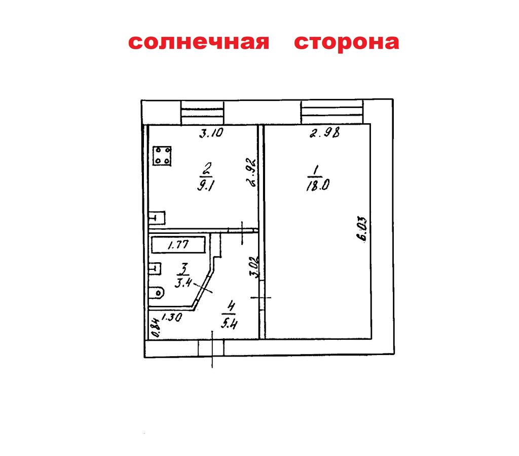 - Удачная планировка: большая кухня 9,1 м2, комната 18 м2, гардеробная. Балкона нет.