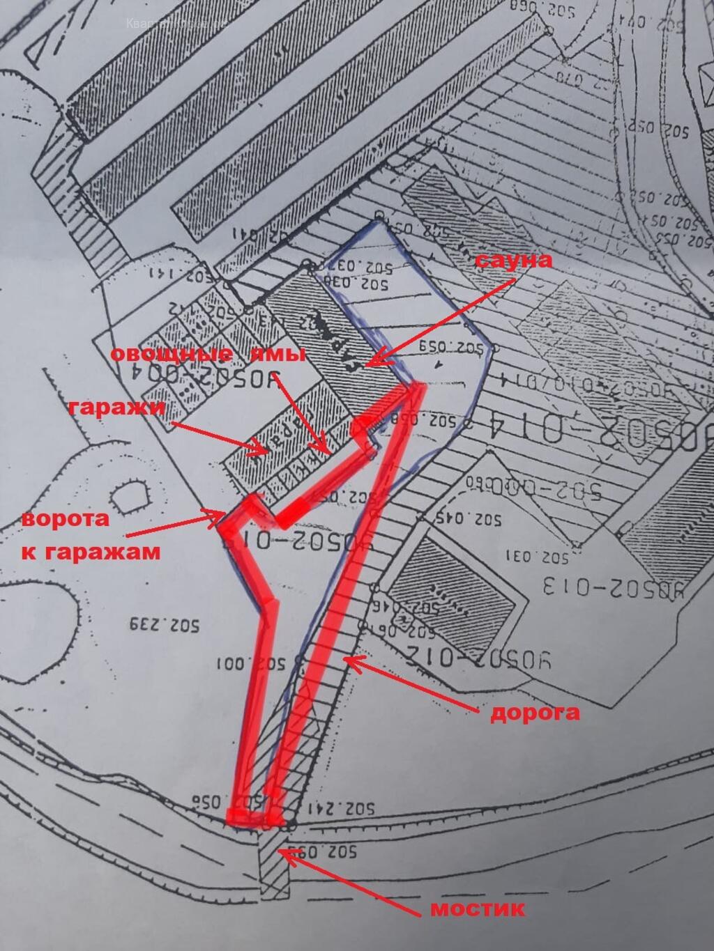 - Расположен слева за мостиком, до ворот в гаражи. Прямо вдоль дороги до угла сауны, участок слева.