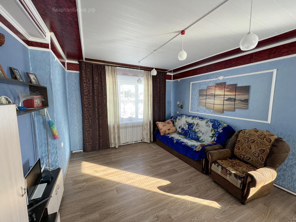 - На первом этаже кухня, большая гостиная, санузел. Из кухни есть выход на участок. На втором этаже три комнаты, два балкона, санузел.