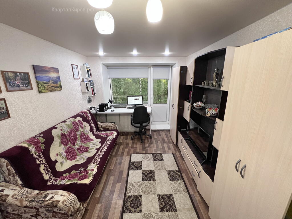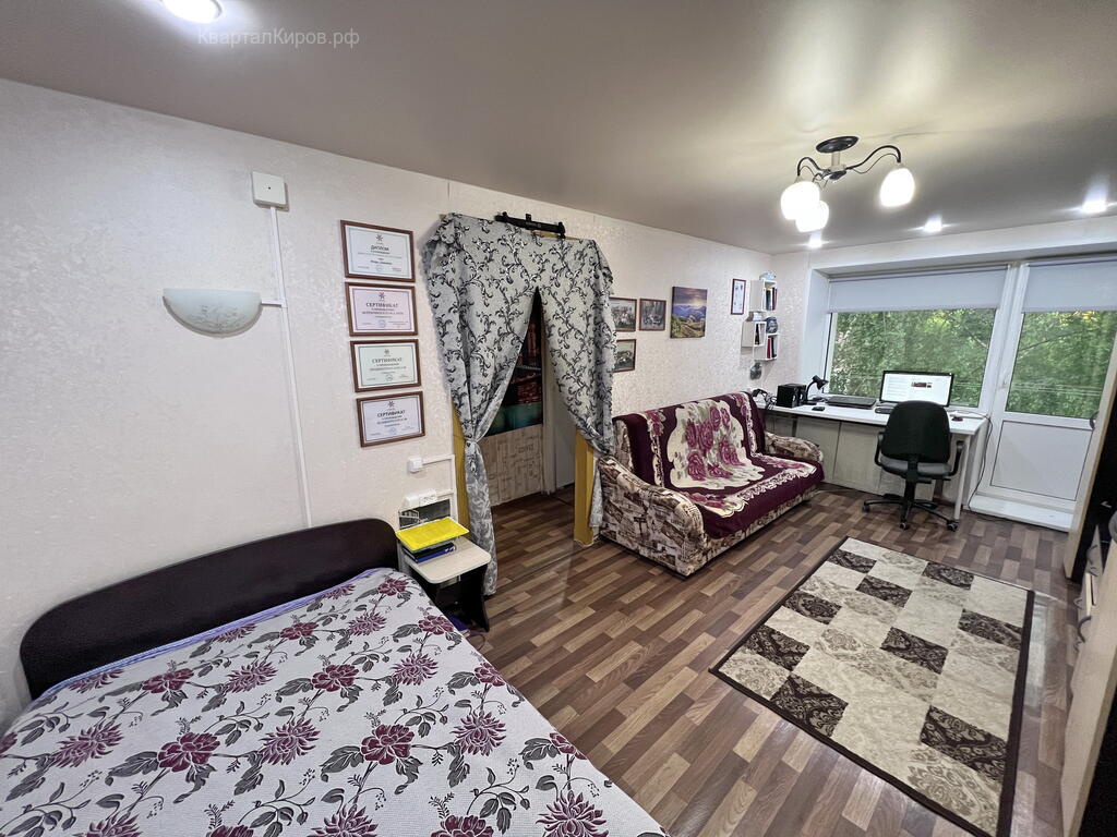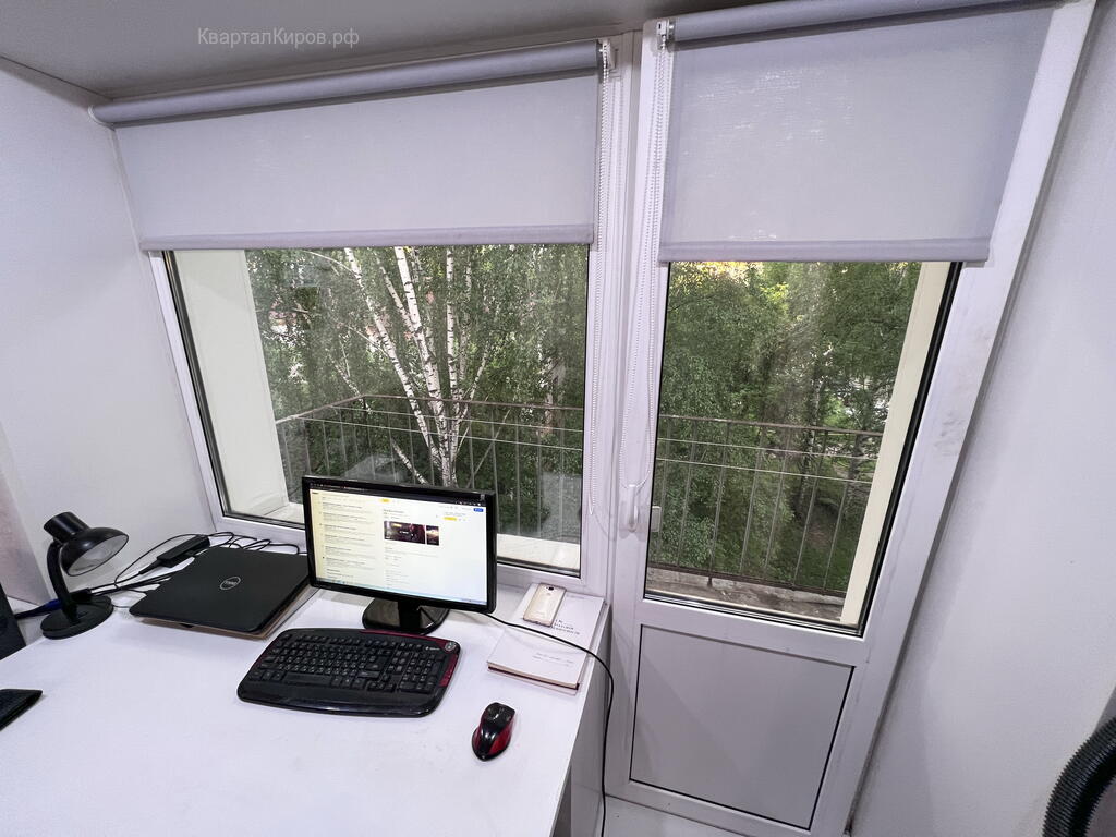 - Сделан косметический ремонт: в комнате пластиковое окно, установлен широкий подоконник - оборудовано рабочее место с шикарным видом на зеленый двор + выход на балкон.