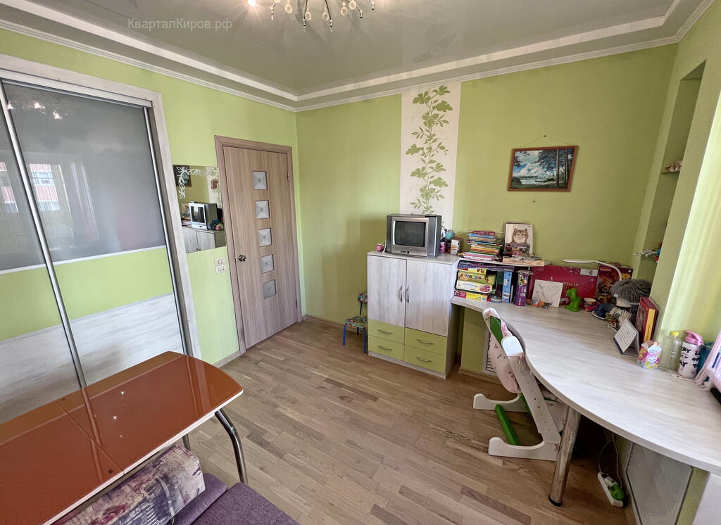 - Остается угловой кухонный гарнитур, три шкафа-купе, мебель в детской комнате.