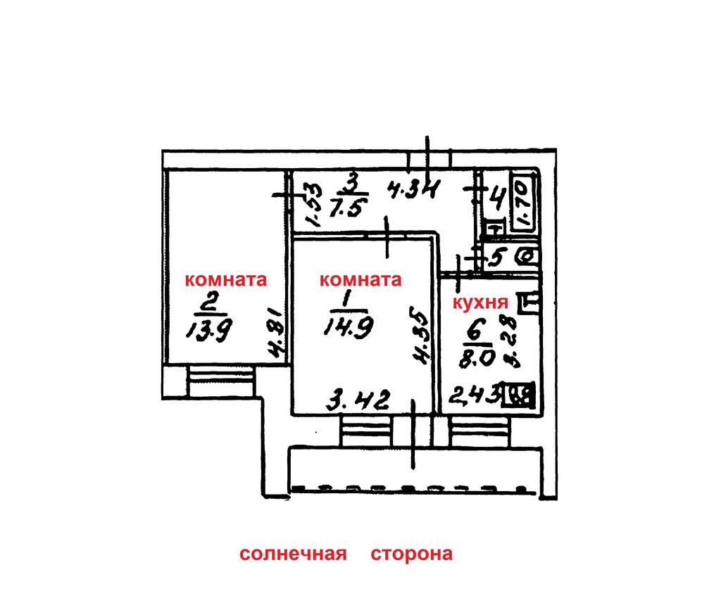 - Общая площадь 50 м2, жилая 29 м2, кухня 8 м2, лоджия 6 метров.