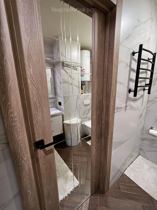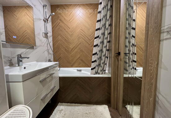 - Сделан отличный ремонт. Делали для себя, на материалах не экономили. На полу керамогранит и ламинат, санузел в плитке.