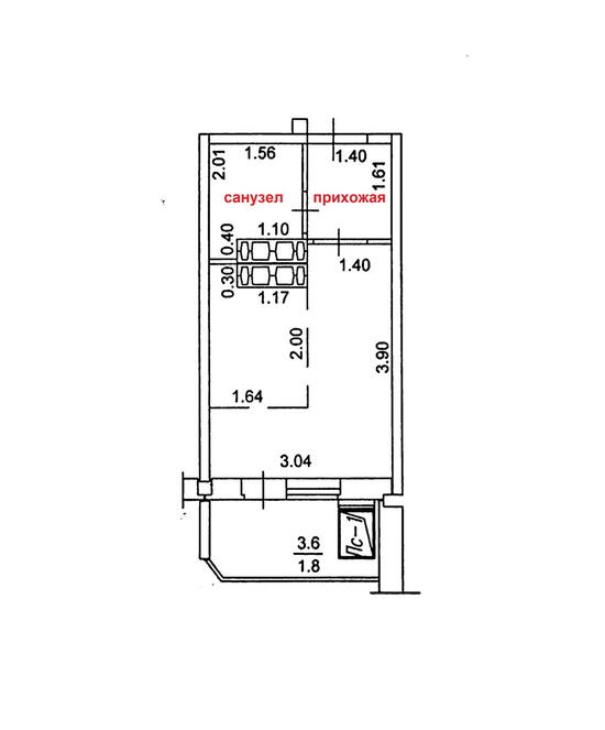 - Пластиковое окно в большой комнате, балкон застеклен. Оставляем кухонный гарнитур с новой колонкой-автоматом (всегда горячая вода).