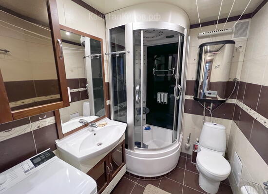 - Натяжной потолок, в ванной заменены трубы, стены обшиты красивыми панелями.