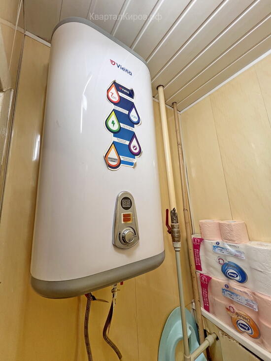 - Пластиковое окно в большой комнате, балкон застеклен. Оставляем кухонный гарнитур с новой колонкой-автоматом (всегда горячая вода).