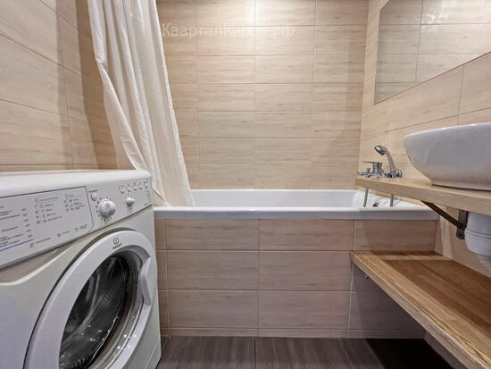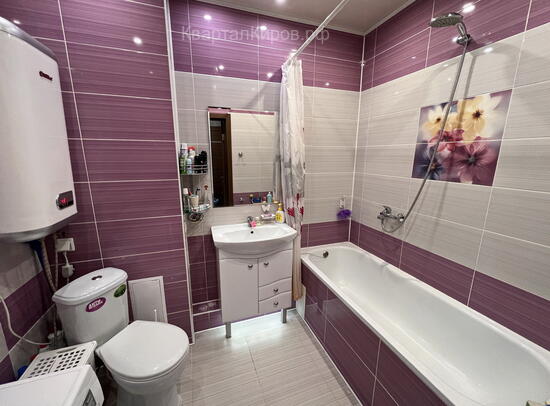 - В квартире сделан ремонт: плитка в ванной, красивый кухонный гарнитур. Осталось установить межкомнатные двери и натяжные потолки.
