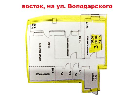 - 3й этаж 10этажного кирпичного дома, общая плащадь 60 м2.