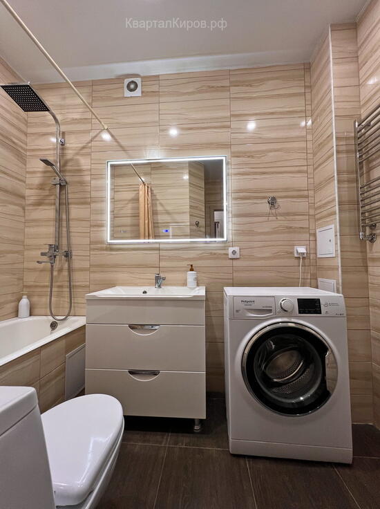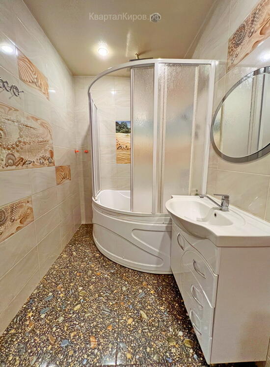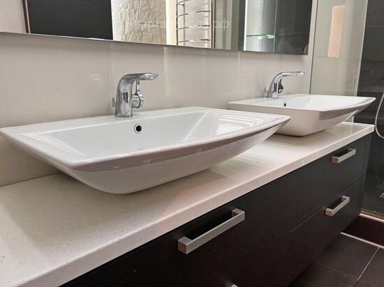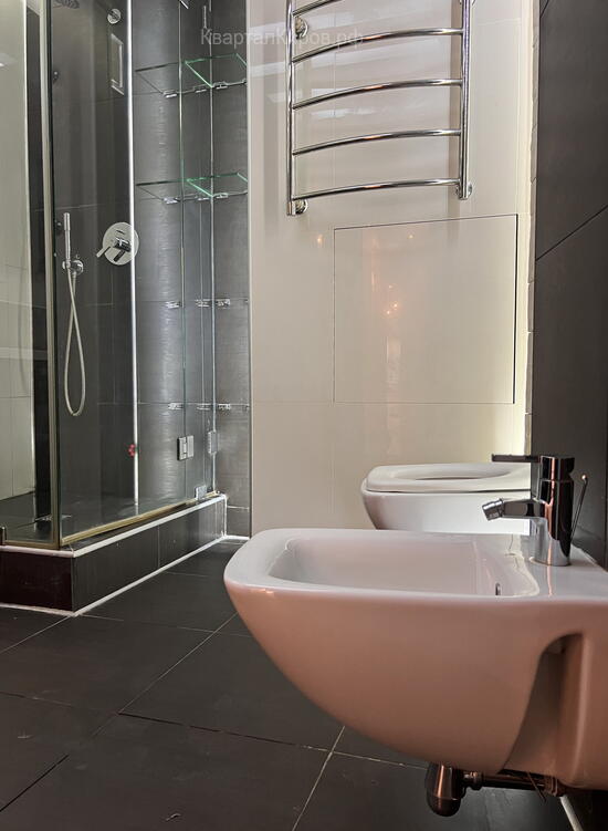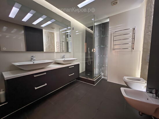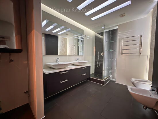 - Сделан отличный ремонт. Делали для себя, на материалах не экономили. На полу керамогранит и ламинат, санузел в плитке.