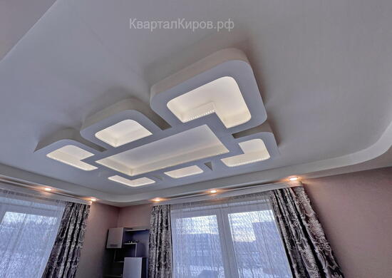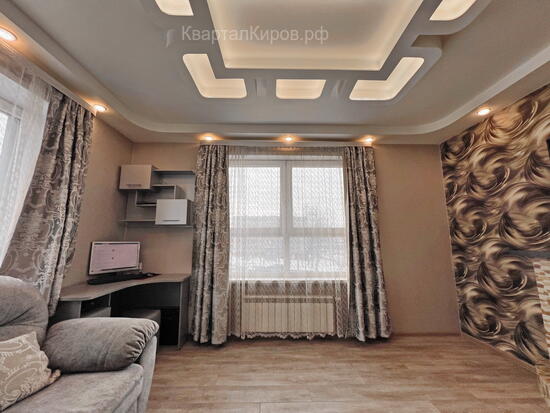 - Сделан качественный современный ремонт: на полу керамогранит, в санузлах плитка, в гостиной многоуровневый потолок.