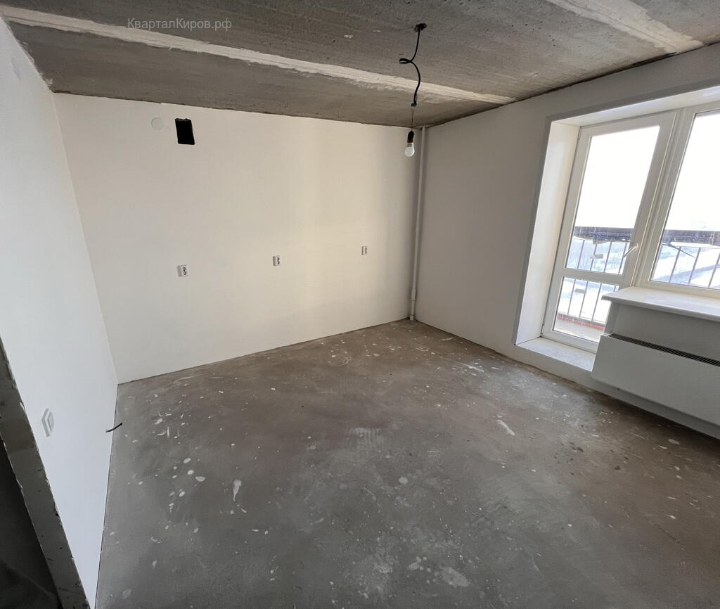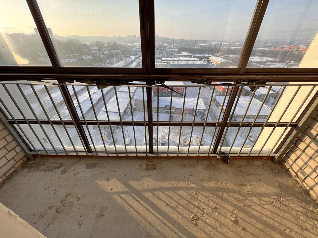 - Сделана предчистовая отделка. Качественная стяжка. Стены выравнены и зашпаклеваны, осталось поклеить обои. Установлены электророзетки и выключатели. На лоджии панорамное остекление.
