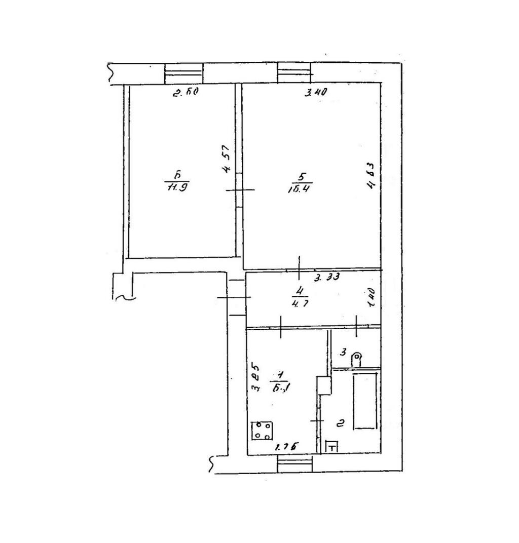- Две комнаты 16.4 + 11.9 м2, кухня 6.1 м2, раздельный санузел.