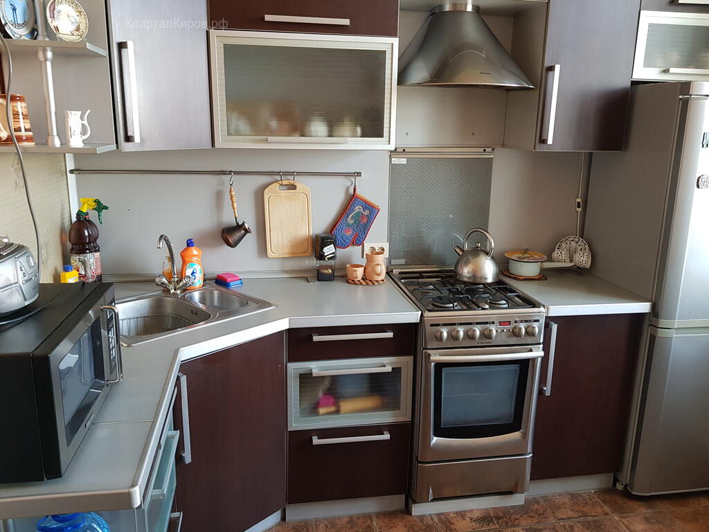 - Квартира с ремонтом, установлен хороший кухонный гарнитур. Всё работает. Можно заехать и жить.