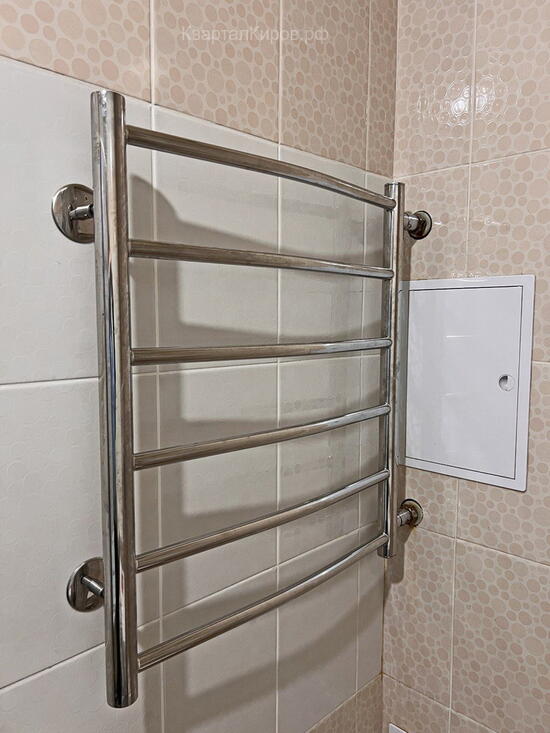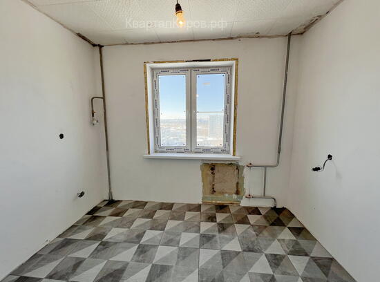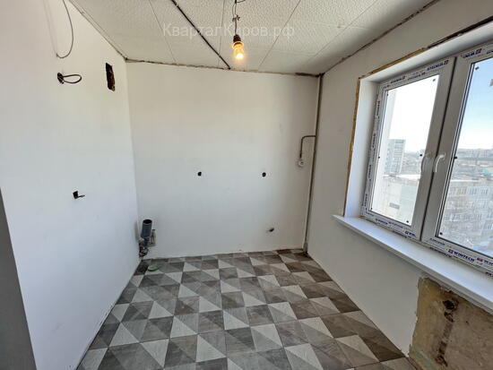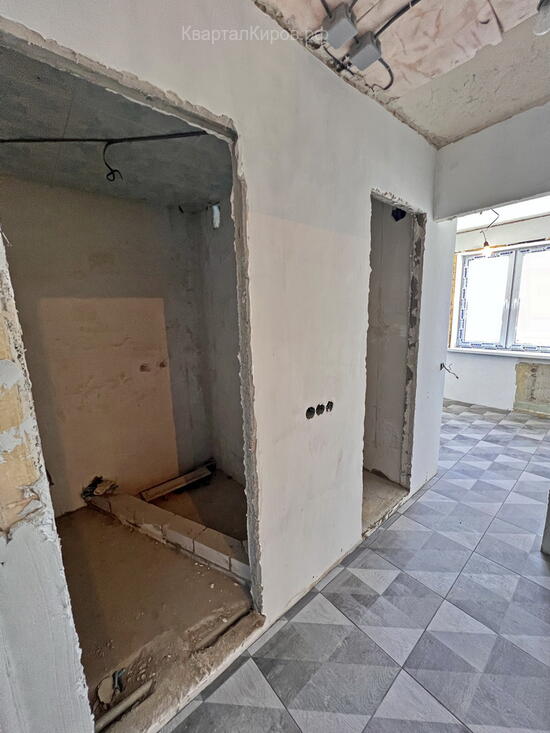 - В квартире сделан ремонт: плитка в ванной, красивый кухонный гарнитур. Осталось установить межкомнатные двери и натяжные потолки.