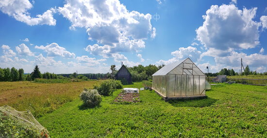 - Участок разработан, растет много яблонь, кустов. Сделана большая теплица на кирпичном фундаменте.