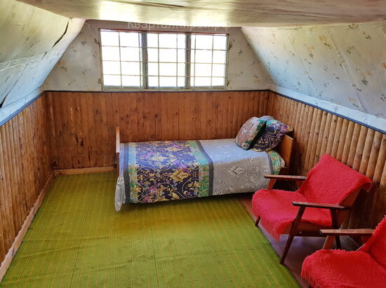 - Дому 20 лет, построен из бревна, стоит на ленточном фундаменте. На первом этаже открытая веранда, прихожая, теплая комната с печкой, на втором этаже летняя комната. Внутри обшито вагонкой, хорошая красивая печка, пластиковые окна. Крыша из профнастила.