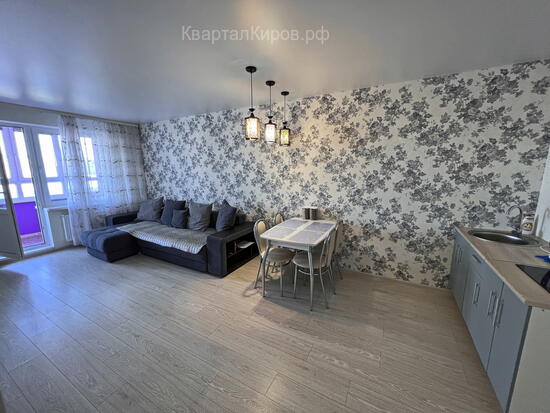 - Удобная планировка: просторная кухня-гостиная, спальня, большая утепленная лоджия, которую можно использовать как комнату, место под гардеробную.