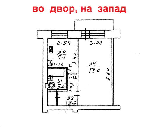 - Пластиковое окно в большой комнате, балкон застеклен. Оставляем кухонный гарнитур с новой колонкой-автоматом (всегда горячая вода).