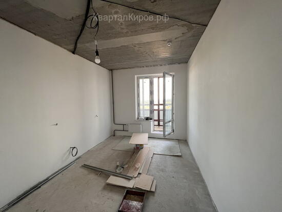 - В квартире выполнены все грязные работы: сделаны стяжка и электроразводка, стены зашпаклеваны и подготовлены к поклейке обоев. Лоджия остеклена.